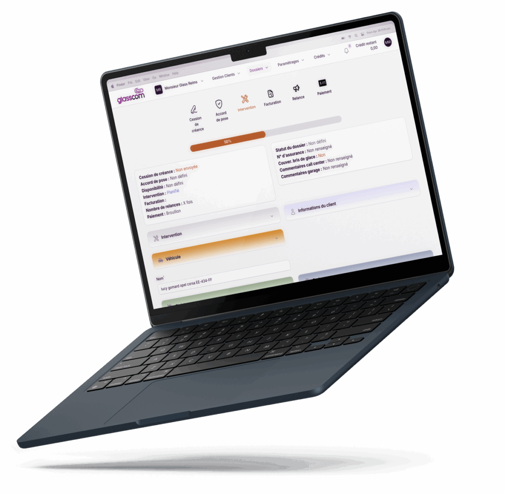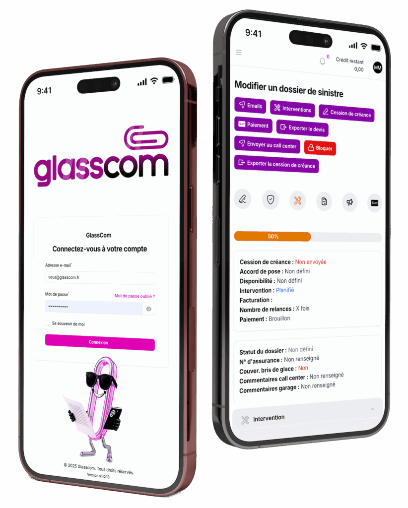 GlassCom gère tous vos dossiers de sinistres, de la déclaration, à la relance, en passant par la facturation.